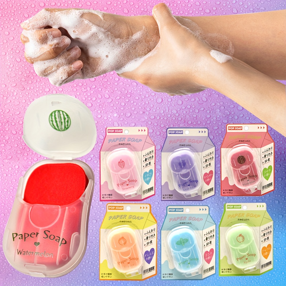 Portable Paper Soap for Outdoor Travel, Disposable Soap Sheets, 50 Sheets per Box - 6 Box Pack Outdoor Travel Portable Paper Soap, Disposable Soap Sheets, 50 Sheets per Box - Pack of 6 Boxes