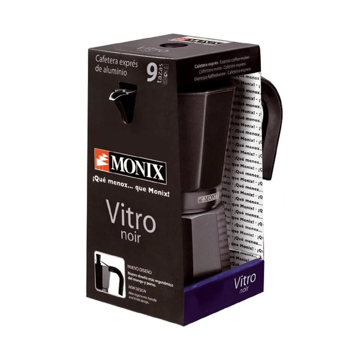 Cafetera italiana Monix Noir Vitro de aluminio. De 1 a 12 tazas de café. Apta para cocinas de gas, vitrocerámica y eléctricas.